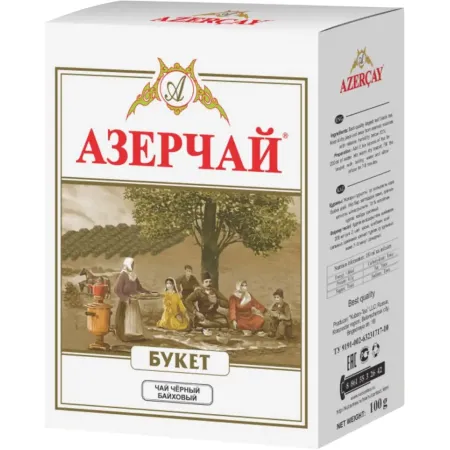 Азерчай «Букет» является достойным продолжителем чая Азербайджанский Букет экспортируемого в Советский Союз и преграничные страны. Это чай, который на протяжении многих лет украшал наши столы, а также сохранил и передал свой восхитительный вкус из поколения в поколение. Божественный напиток уносит нас в прошлое, выражает наши эмоции и обогащает душевный комфорт.