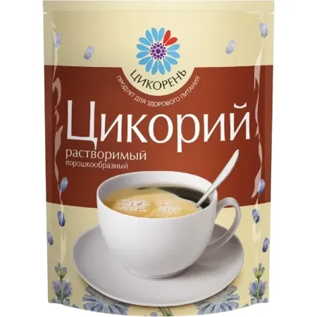 Цикорий натуральный растворимый порошкообразный «Цикорень» не содержит кофеин и особенно ценен для тех, кто в силу ряда причин не может пить натуральный кофе.