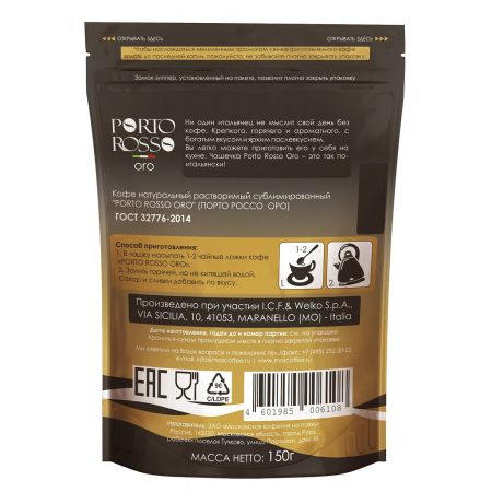 Кофе растворимый Московская кофейня на паяхъ «Porto Rosso Oro», 150 г.