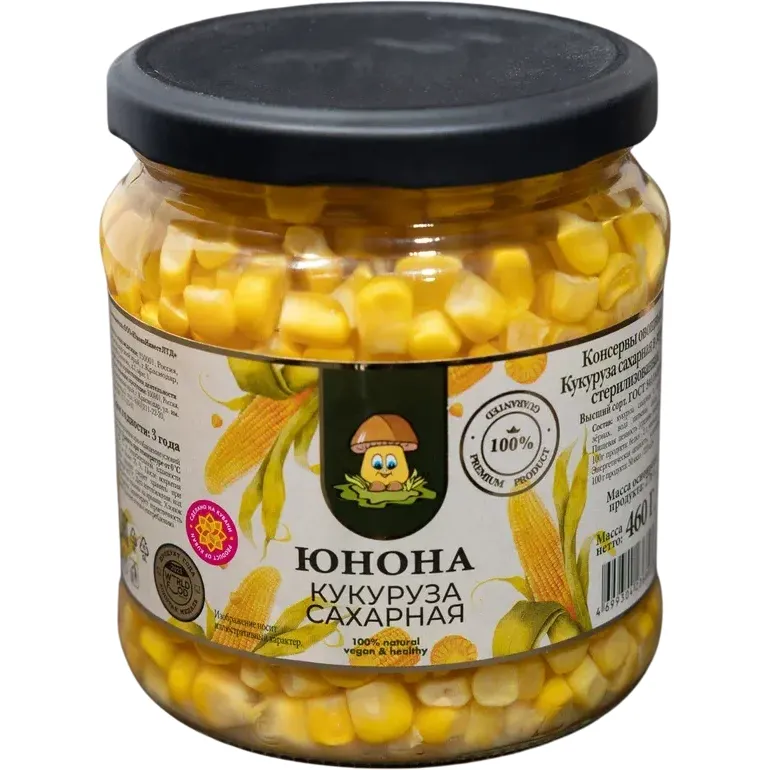 Состав: кукуруза сахарная в целых зернах, вода питьевая, сахар, соль.