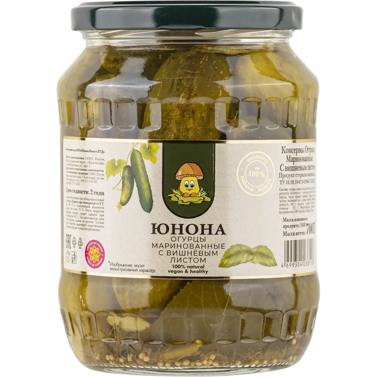 Маринованные огурцы Юнона «С вишневым листом», 700 г.