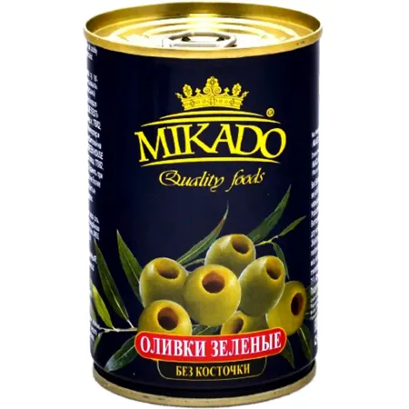 Зеленые оливки Mikado без косточки, 300 мл.