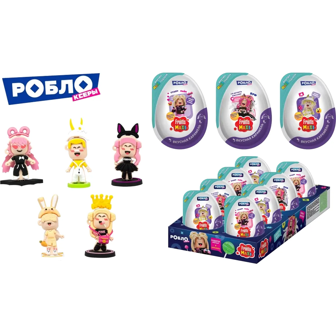 Карамель в пластиковом яйце Fruitls Maxi «Роблоксеры, Kvinka, Женяша», 11 г.