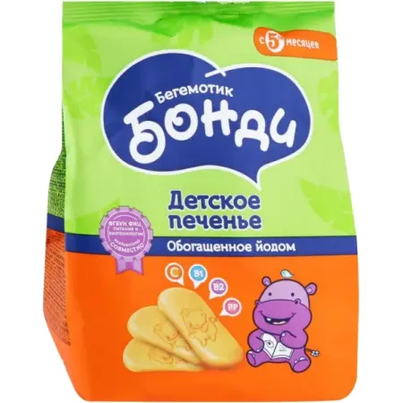 Детское печенье обогащённое йодом «Бегемотик Бонди», 180 г.