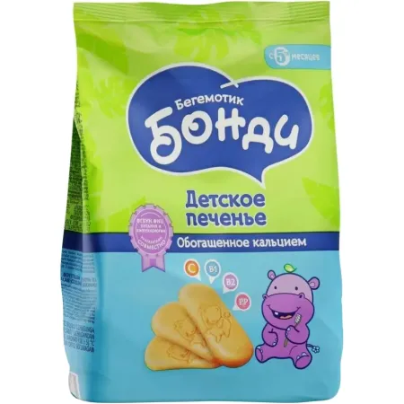 Детское печенье обогащённое кальцием «Бегемотик Бонди», 180 г.