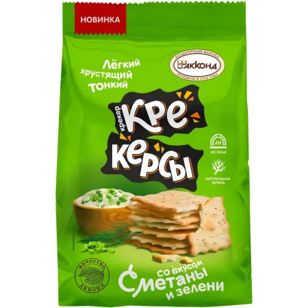 Легкий хрустящий тонкий, со вкусом сметаны и зелени. Крекер - полезная альтернатива чипсам. Легкий, тонкий и хрустящий крекер со вкусом сметаны с ароматной зеленью. Вкусно отдельно и как дополнение к основному блюду. Идеален для перекуса.
