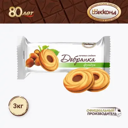 Печенье-сэндвич «Добрянка» с фундуком, 3 кг.