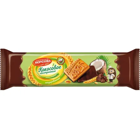 Необычный дуэт кокосового печенья и тёмной глазури раскрывается по-новому в печенье «Кокосовое настроение» глазированное.
