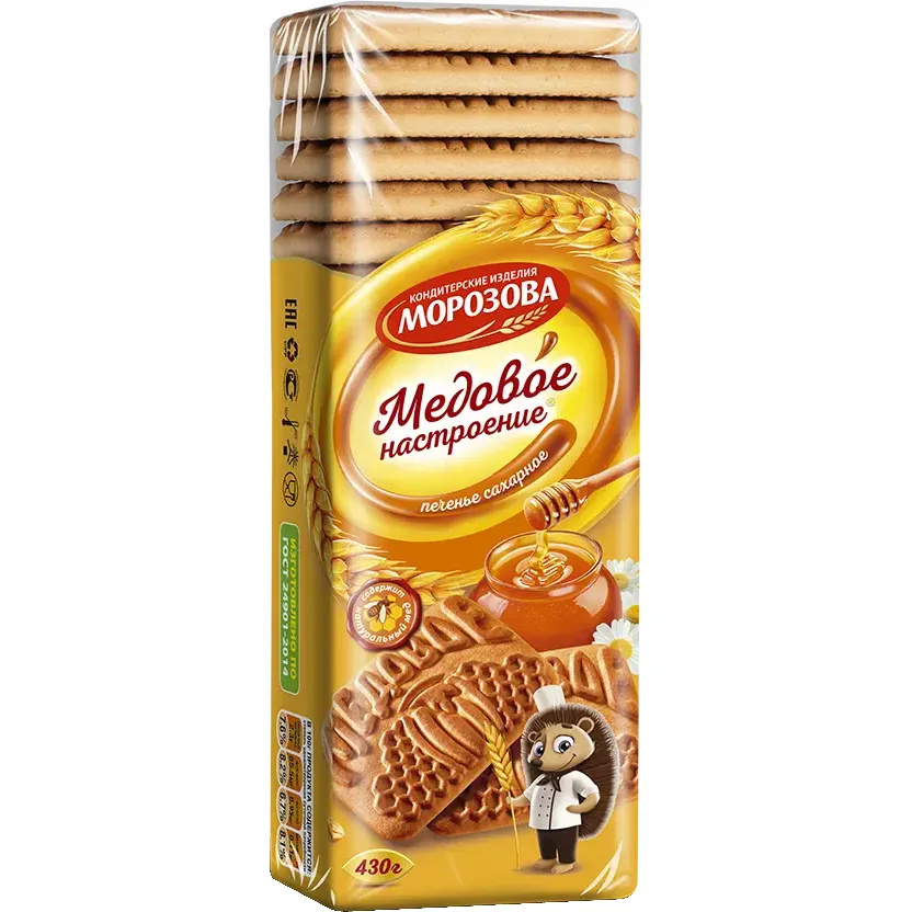 Натуральный мёд, входящий в состав печенья «Медовое настроение», придаёт ему душистый, аппетитный аромат и делает любимым лакомством для всей семьи.