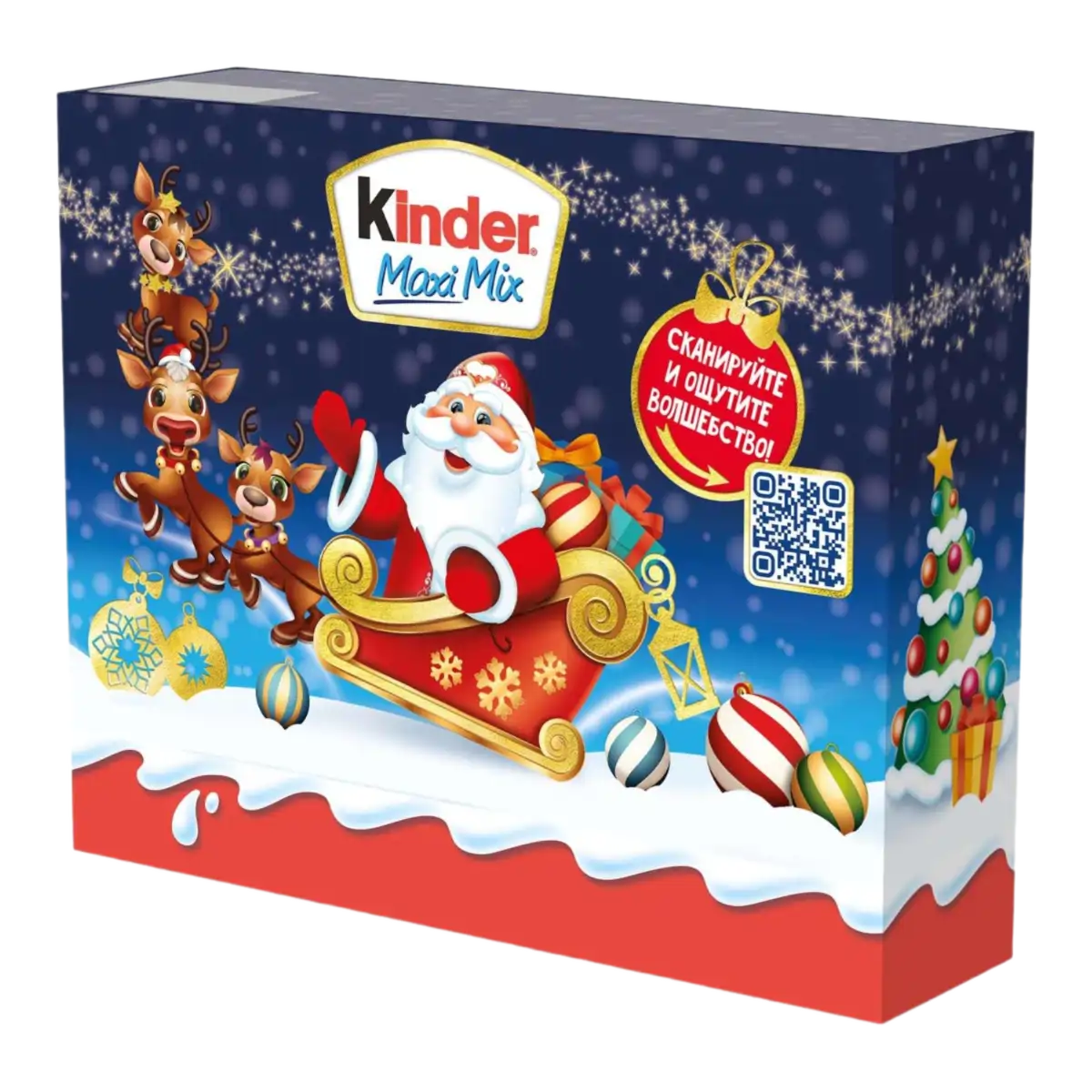 Новогодний набор с любимыми продуктами Kinder - прекрасный подарок для ребёнка! В наборе: яйцо Kinder Сюрприз - 1 шт. вафли Kinder Bueno - 1 шт. шоколад молочный Kinder Chocolate (50 г) - 1 шт. шоколад молочный Kinder Maxi - 3 шт. шоколад молочный Kinder Country с молочно-злаковой начинкой - 2 шт.