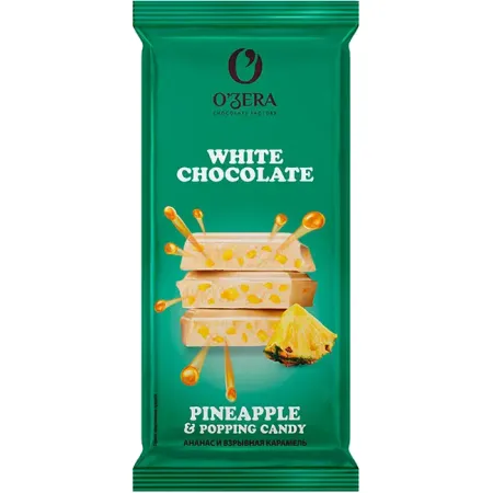 Белый шоколад O'Zera с ананасом и взрывной карамелью, 90 г.