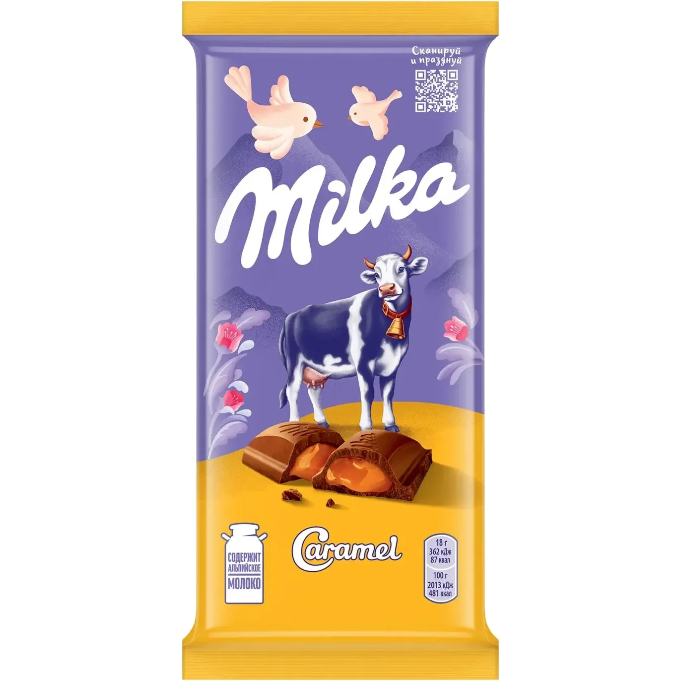 Тающий во рту молочный шоколад с добавлением альпийского молока и мягкая карамельная начинка. Классика нежного вкуса!