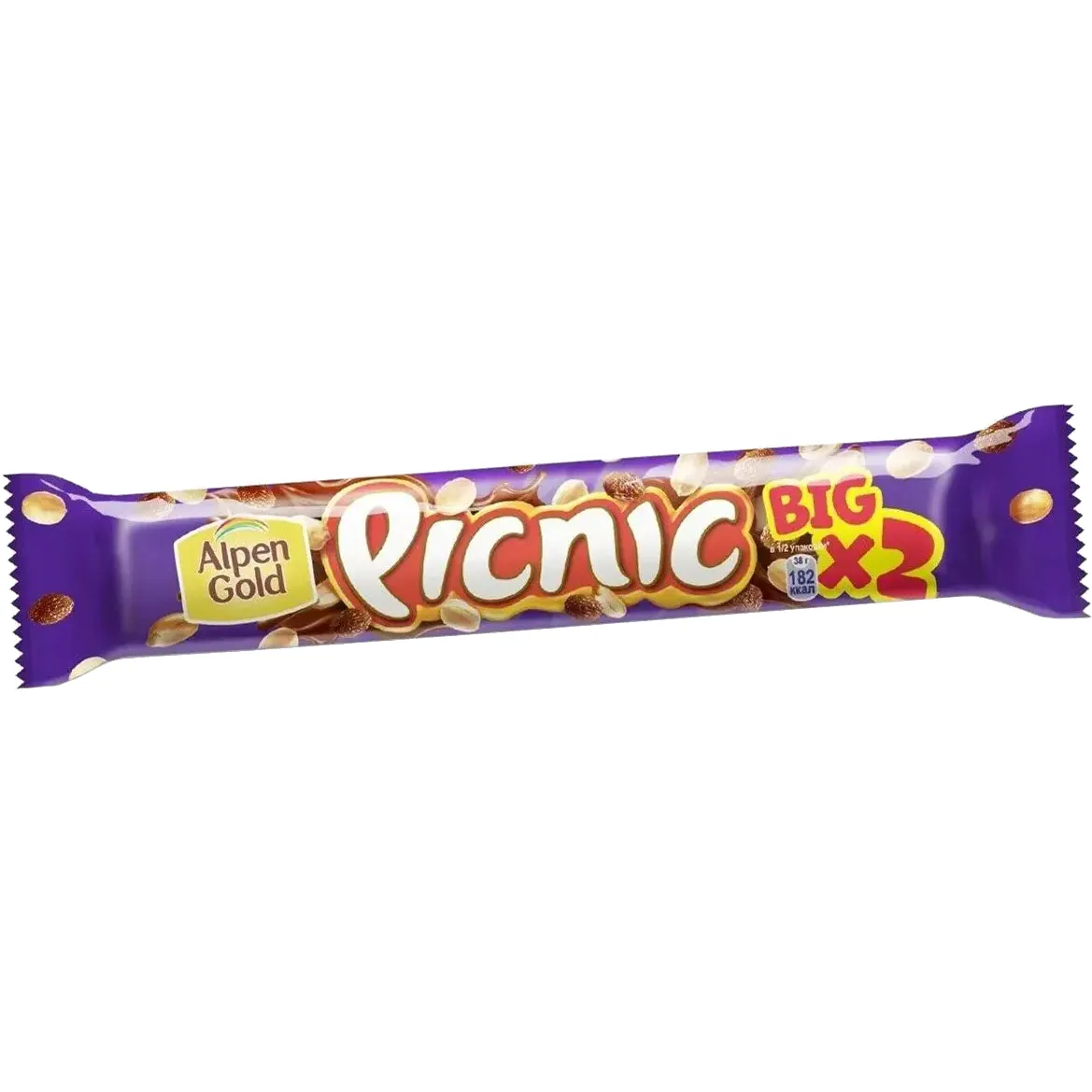 Двойная конфета с арахисом и изюмом, начинкой из мягкой карамели, вафель и воздушного риса, покрытая молочным шоколадом.