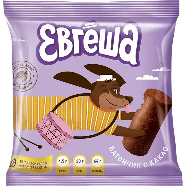 Батончик с какао. Какао из отборных какао-бобов. Без искусственных красителей. Без консервантов.
