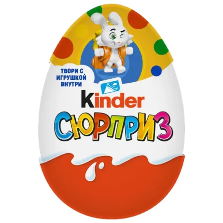 Kinder Сюрприз - яйцо из молочного шоколада с белым молочным внутренним слоем, содержащее игрушку-сюрприз. Молочный шоколад высокого качества изготовлен специально для детей и содержит много молока. Все игрушки уникальны - они созданы специально для Kinder Сюрприза. Серия Игрушки для творчества АРТ.