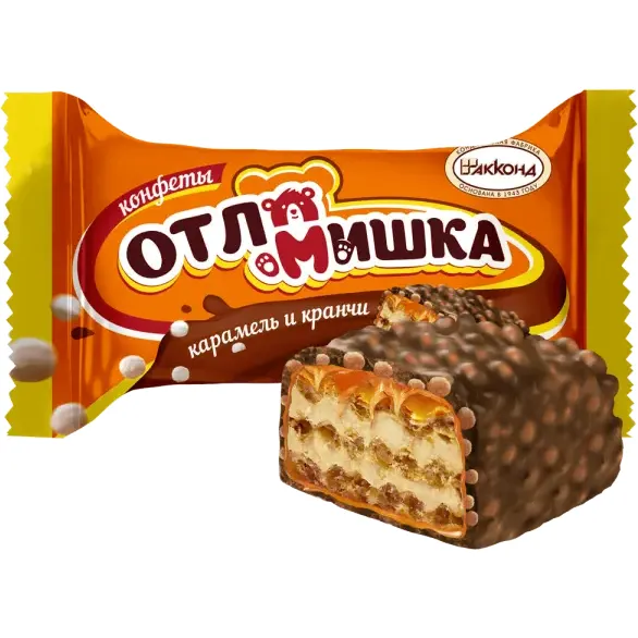 Сочетание вкуснейших вафель со сливочной начинкой, глазированные карамелью, глазурью и обсыпаны хрустящими кранчами.