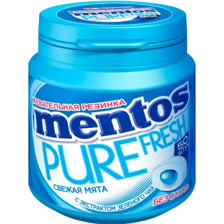 Жевательная резинка Mentos Pure Fresh «Свежая Мята» содержит экстракт зеленого чая для интенсивного ощущения свежести.