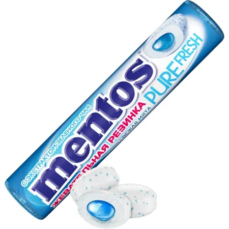 Жевательная резинка Ментос Pure Fresh «Свежая Мята» содержит экстракт зеленого чая для интенсивного ощущения свежести. Теперь в новом, но культовом формате ролла! Уникальный жидкий центр жевательных резинок Pure Fresh доставляет ощущение мгновенного освежения дыхания - надолго.