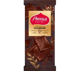 Храня верность традициям, мы создаём качественный шоколад по оригинальным рецептам. Шоколад Россия- щедрая душа! Российский Темный шоколад - это классика темного шоколада с высоким содержание какао-продуктов. Благородный терпкий вкус с насыщенными нотками рома и притягательным вкусом какао - не оставят в стороне ценителей настоящего темного шоколада. Насладиться оригинальным вкусом можно с чашечкой черного кофе, ведь именно этот напиток лучше всего подчеркивает нотки темного шоколада.