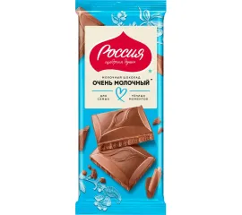 Шоколад "Очень молочный" от бренда "Россия"- щедрая душа! - это нежная классика, способная растопить ваши сердца. Отборное молоко, качественные какао-бобы и элегантный дизайнупаковки доставят вам эстетическе и гастрономическое удовольствие. Изящная обновленная форма дольки шоколада раскрывает весь яркий и насыщенный молочный вкус. Кусочки шоколада медленно таят во рту, продлевая ваше удовольствие.