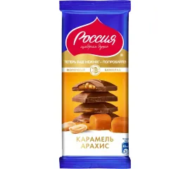Молочный шоколад Россия - Щедрая душа! с карамелью и арахисом, 82 г.