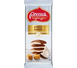 Сложно пройти мимо шоколада Кокос и Вафля от бренда Россия-Щедрая душа! Невероятное сочетание вкуса тропического кокоса, хрустящей вафли, нежного белого и молочного шоколада заставляют вас мечтать об отдыхе и наслаждении, унося далеко на острова. Нежная начинка растворяется во рту, а молочный шоколад приятно ломается, стоит его только откусить. Закрывай глаза и мечтай!