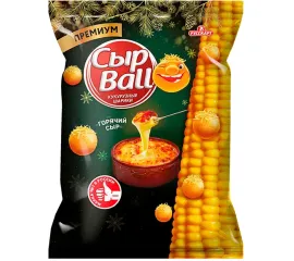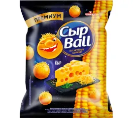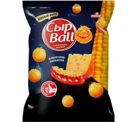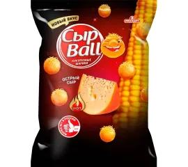 Кукурузные шарики со вкусом сыра. Натуральный продукт высокого качества имеет яркую запоминающуюся упаковку и удобные весовые форматы. Продукт обладает стабильной формой, что позволяет ему не ломаться в пачке. Линейка СырBall расширяется и предлагает Вам, помимо классического сырного вкуса, новые вкусы - острый сыр и копченый сыр!