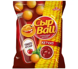 Кукурузные шарики со вкусом кетчупа. СырBall со вкусом кетчупа такой яркий снаружи и внутри! Насыщенный томатный вкус для любителей пикантной классики, чтобы просто похрустеть во время перекуса или в дополнение к прохладительным напиткам в компании друзей! В составе только кукурузная крупа, растительное масло и специи. Снек изготавливается без обжарки в масле.