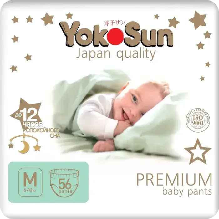 Подгузники-трусики YokoSun Premium, размер M (6-10 кг), 56 шт.