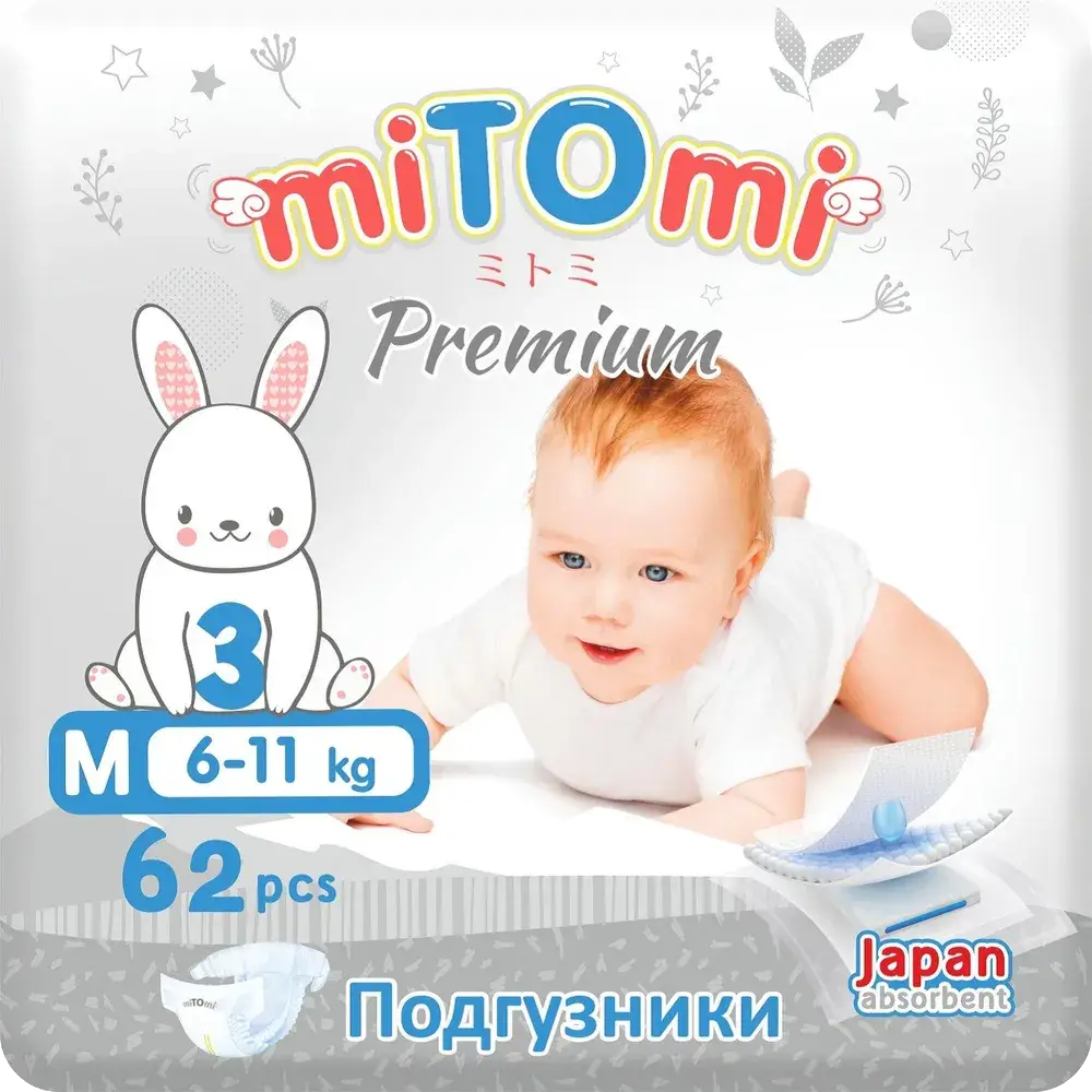 Подгузники на липучках miTOmi Premium, размер М (6-11 кг), 62 шт.