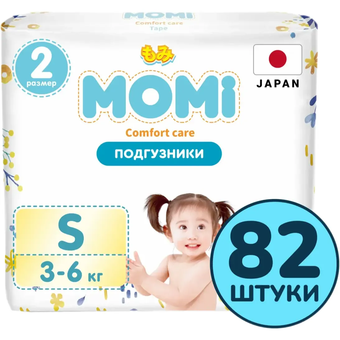 Подгузники Momi Comfort Care, размер S (3-6 кг), 82 шт.