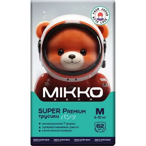 Подгузники-трусики Mikko Bear Super Premium, размер M (6-10 кг), 62 шт.