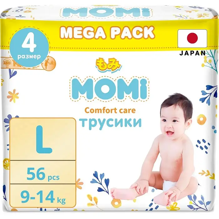 Подгузники-трусики Momi Comfort Care, размер L (9-14 кг), 56 шт.
