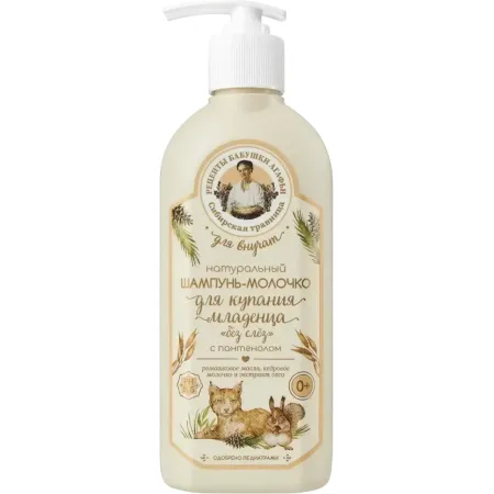 Шампунь-молочко с пантенолом для купания младенца «Натуральный Без слёз 0+» Для Внучат, Рецепты бабушки Агафьи, 350 мл.