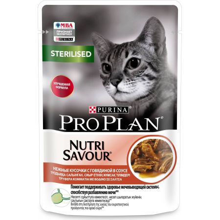 Влажный корм для взрослых стерилизованных кошек и кастрированных котов Pro Plan Nutri Savour с «Говядиной в соусе», 85 г.