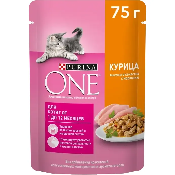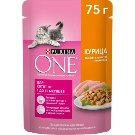 Влажный корм для котят Purina One «Курица и морковь», 75 г.