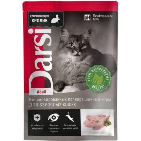 Влажный корм для взрослых кошек Darsi «С кроликом», 85 г.
