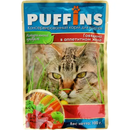 Влажный корм для кошек Puffins «Говядина в желе», 100 г.