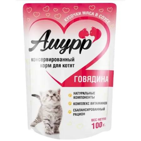 Влажный корм для котят Амурр «Говядина в соусе», 100 г.