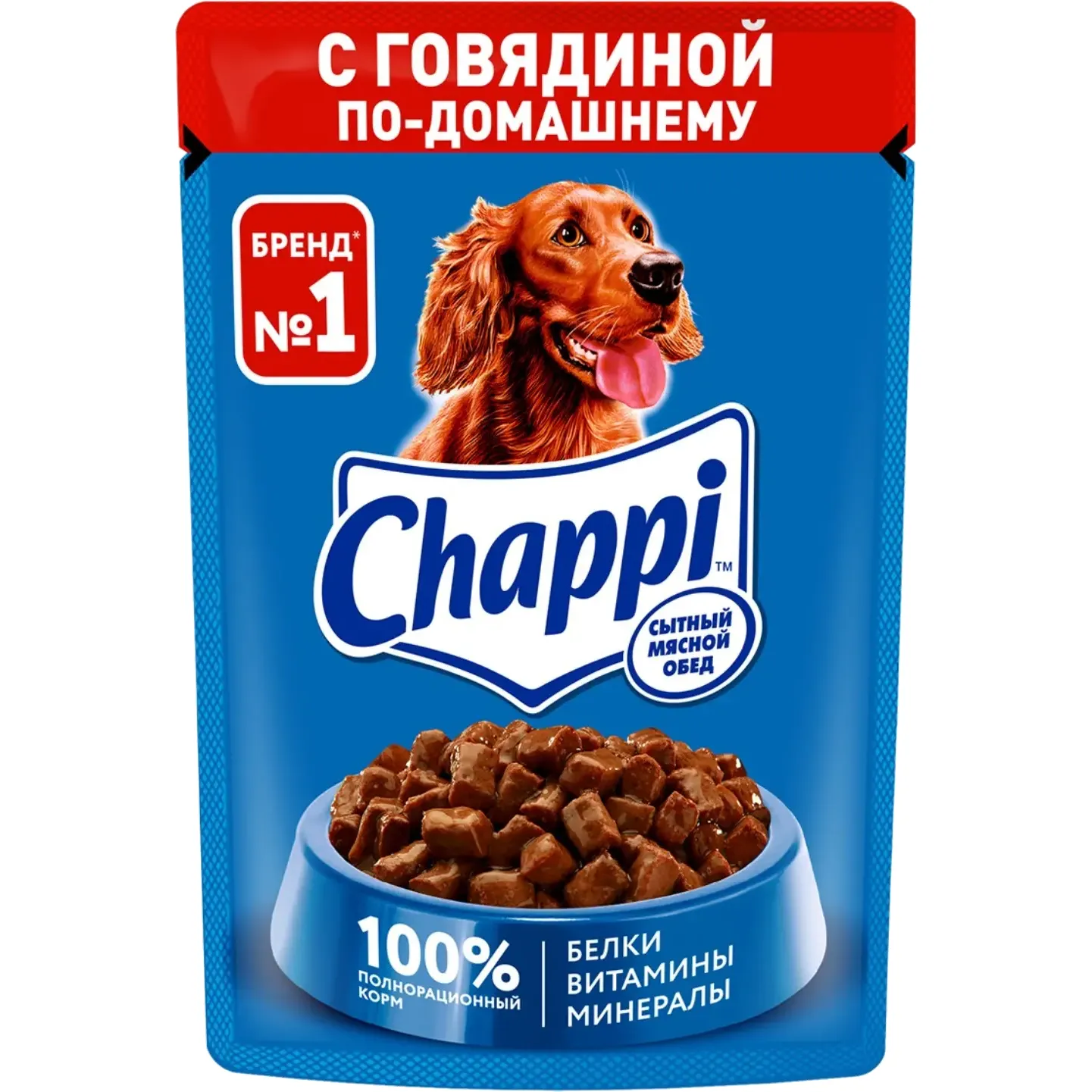 Влажный корм для собак Chappi «Сытный мясной обед. Кусочки в соусе с говядиной по-домашнему», 85 г.