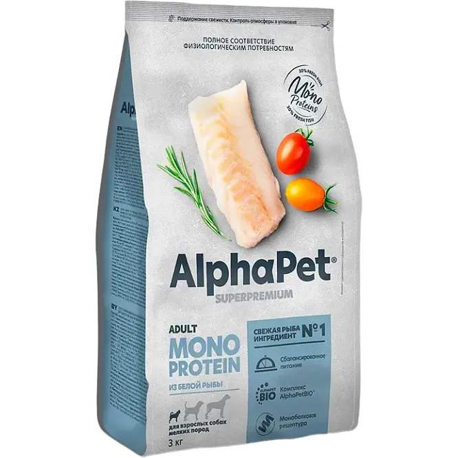 Сухой корм для собак мелких пород AlphaPet Superpremium Monoprotein «Белая рыба», 3 кг.