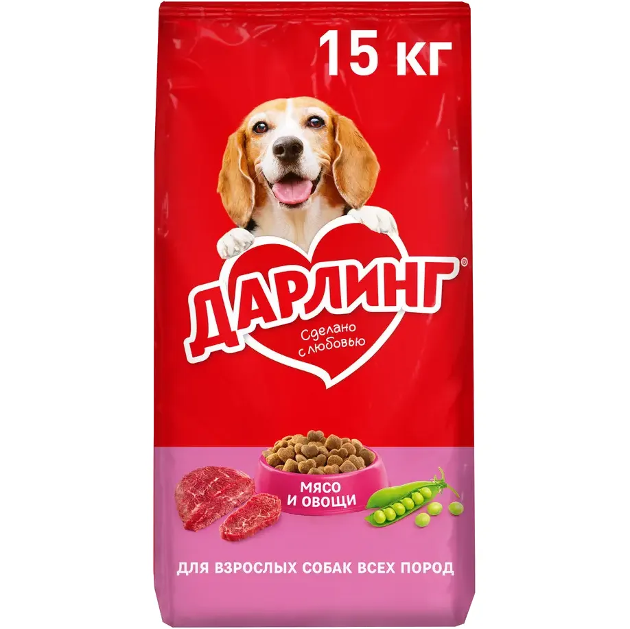 Сухой корм для взрослых собак Дарлинг «Мясо с овощами», 15 кг.