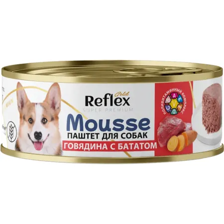 Влажный корм для взрослых собак всех пород Reflex Gold «Паштет из говядины с бататом», 100 г.