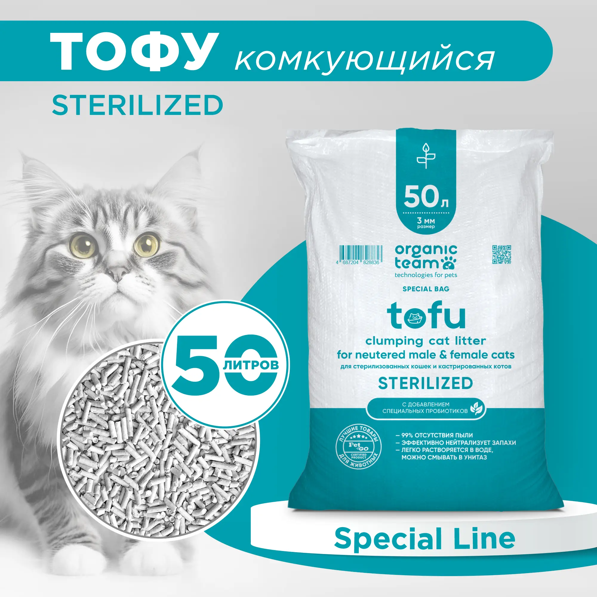 Комкующийся наполнитель для кошачьего туалета Organic team «Tofu Sterilized», 50 л.